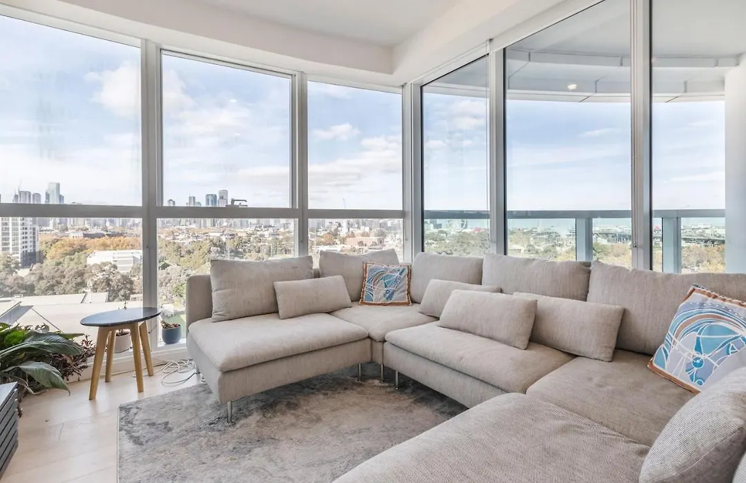 Spacious 90 m² 'The Fawn' Relish In Sub-Penthouse Panorama Apartment is nestled in the North Melbourne district, a 10-minute drive from the 297.3 m Eureka Skydeck Skyscraper. The 2-bedroom apartment has city views to offer and also a car park on site.